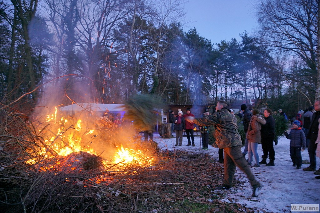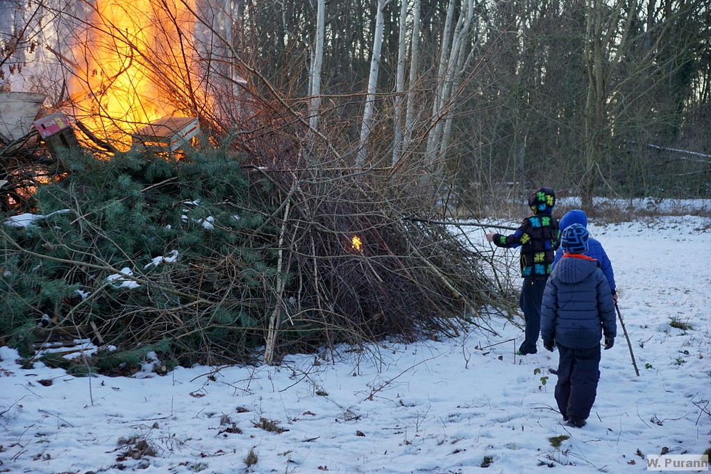 Die mitgebrachten Weihnachtsbäume wurden nach und nach dem Feuer