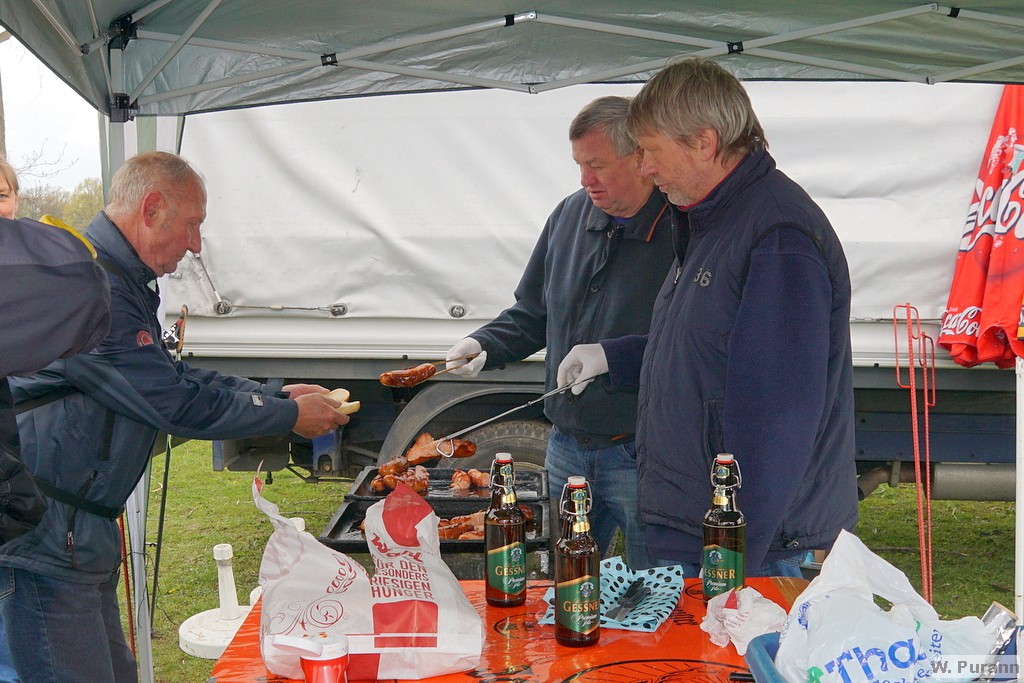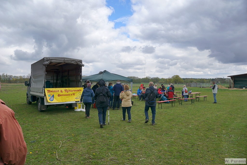 inzwischen Tische, Bänke und ein Zelt aufgebaut hatten, unter dem uns