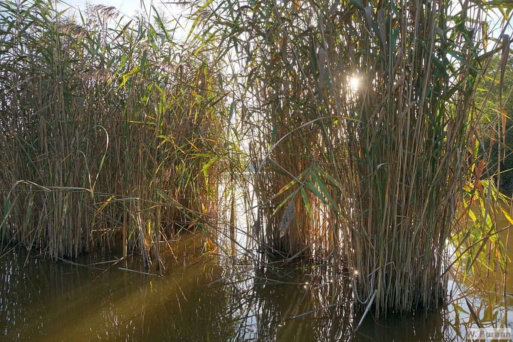 eingeschlossen war. Nicht weit vor mir konnte ich Schwäne und Reiher