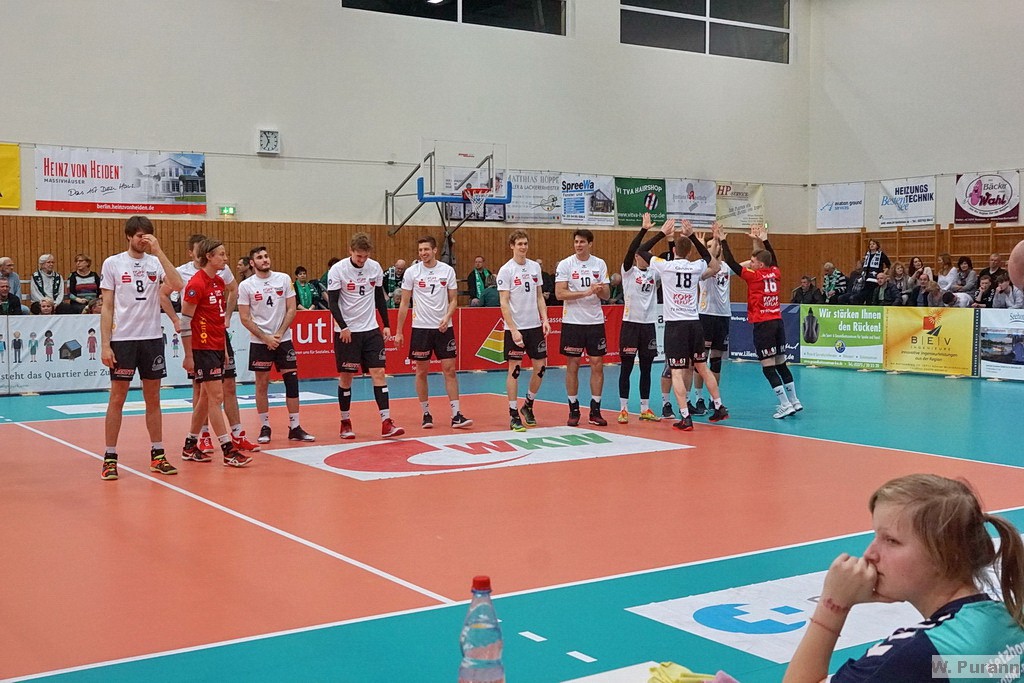 unter Druck. So wurde der 1. Satz von den Gästen mit 25:22 gewonnen.