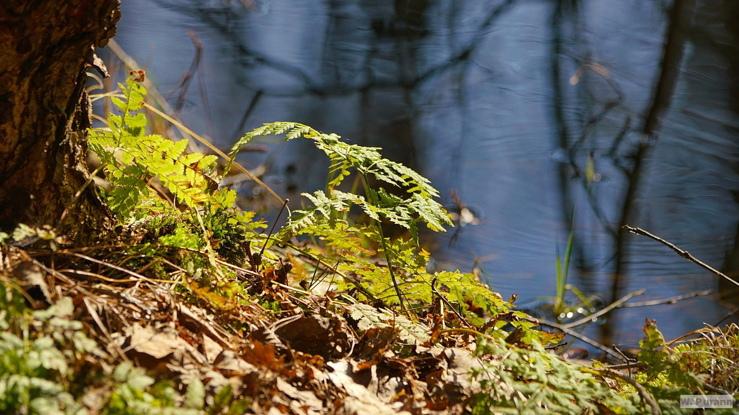 schöne Natur genießen, auf einem im Wasser liegenden Baum trocknete ein