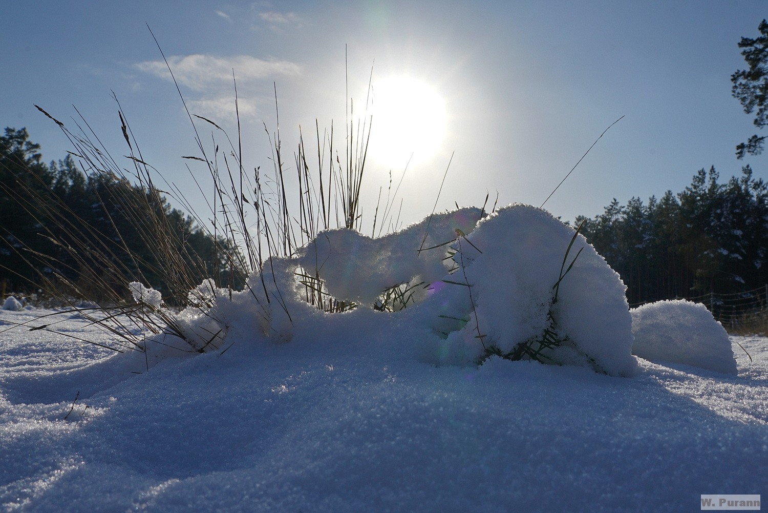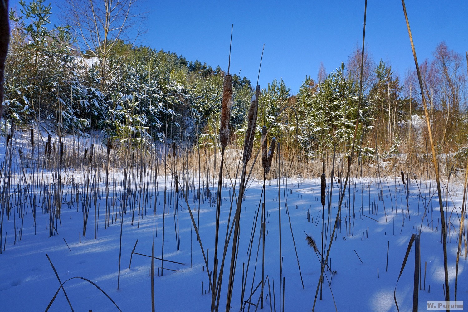 verschneit und die kleinen Teiche zugefroren. Vorsichtig sollte man