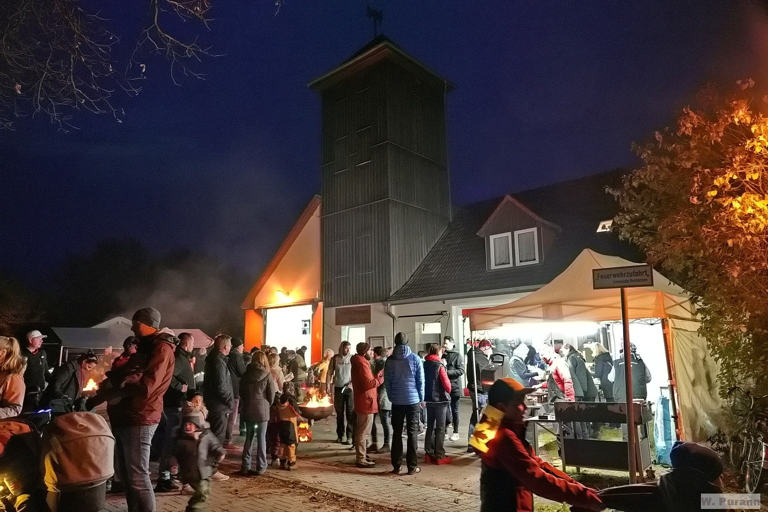Wieder an der Feuerwehr angekommen loderten Feuerschalen, und für die