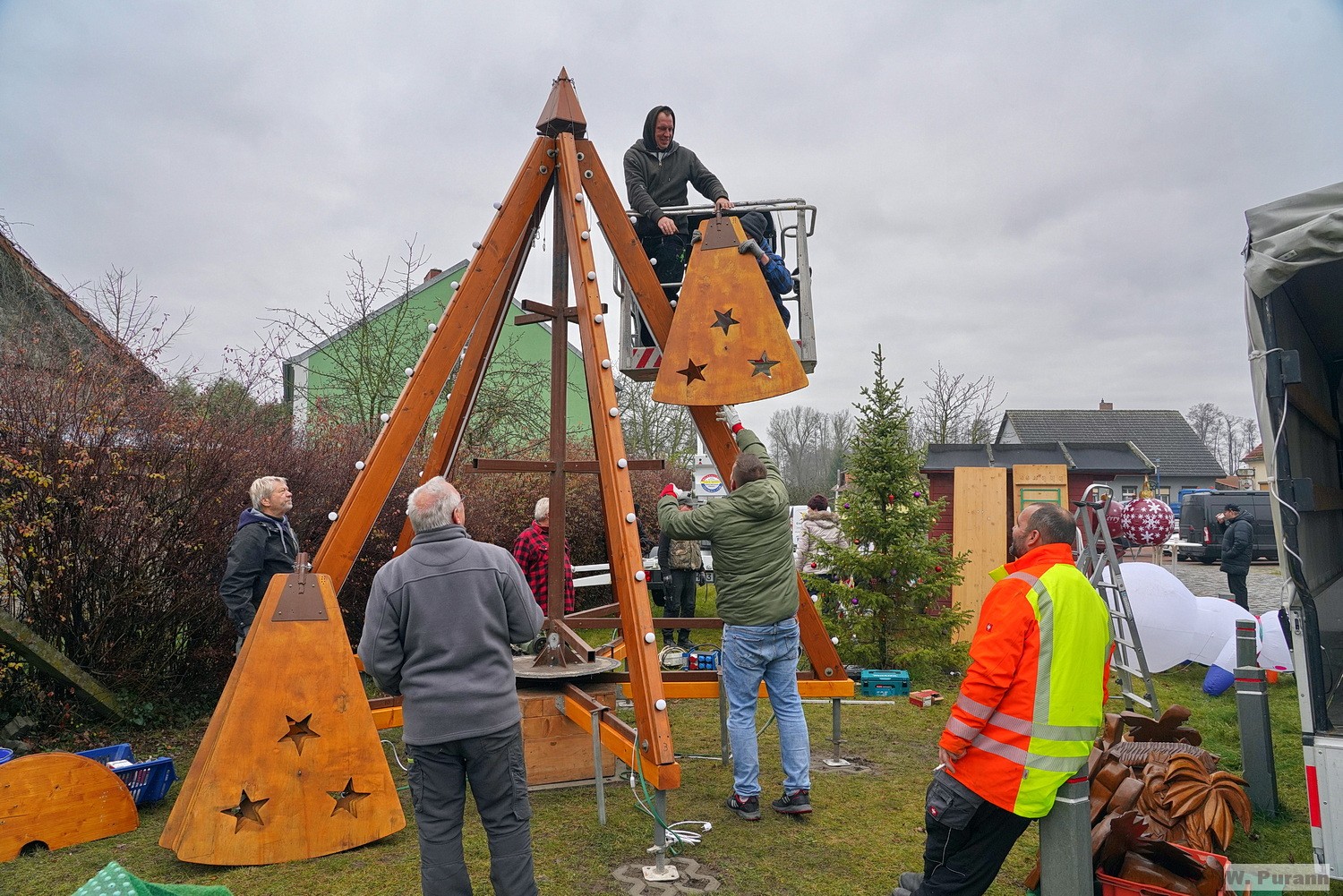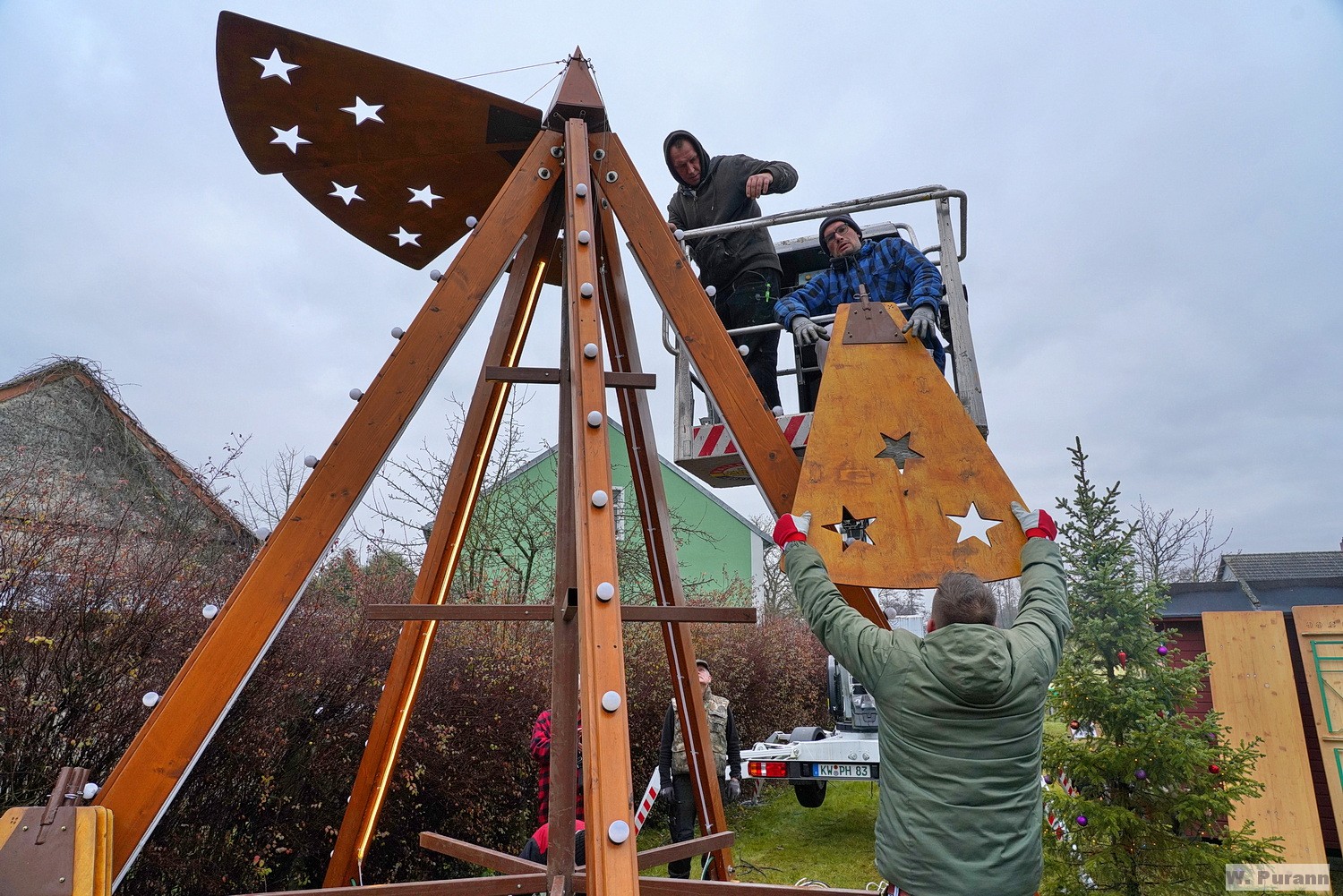 des Bauhofs wieder die Weihnachtsbeleuchtung angebracht.