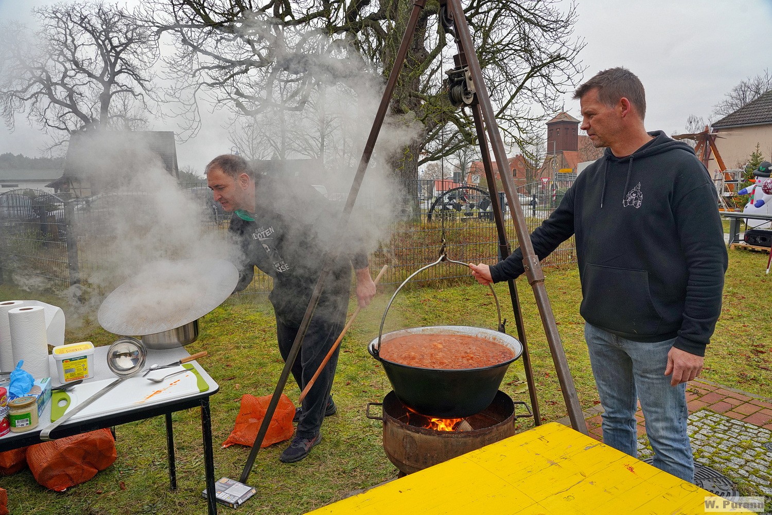 natürlich Glühwein, mit Bratwürsten, Gulaschsuppe und Kuchen zu